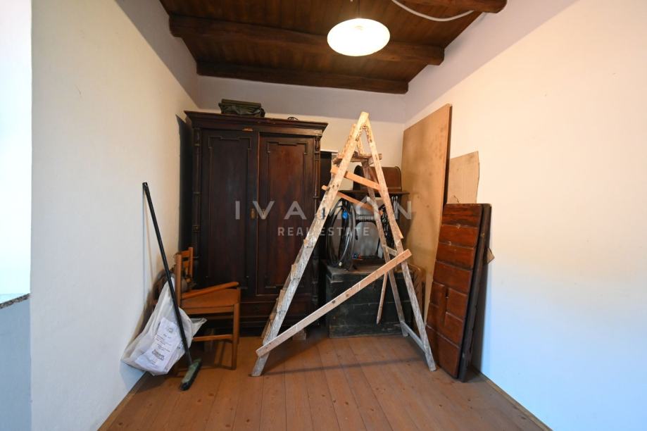 U prizemlju se nalazi jednosoban stan s terasom, konoba, spremište i velika garaža.