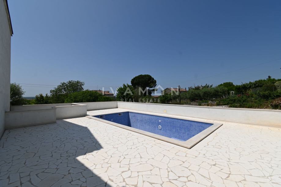 U dvorištu se nalazi još jedna garaža, lijepo uređena okućnica te bazen sa sunčalištem u privatnom dijelu kuće.