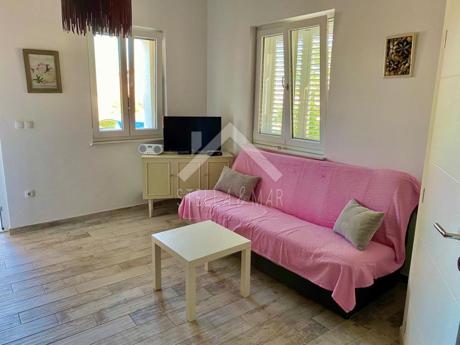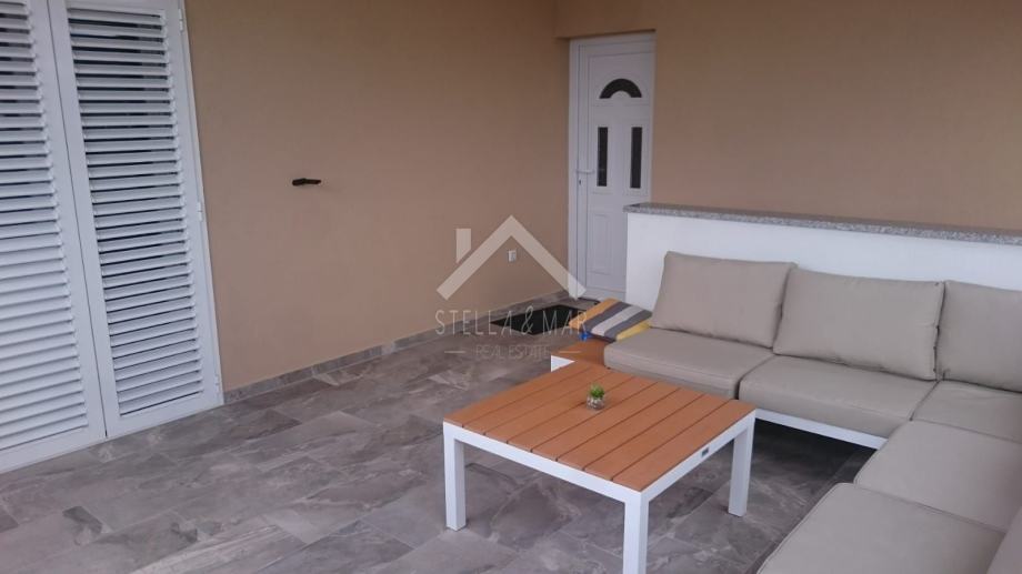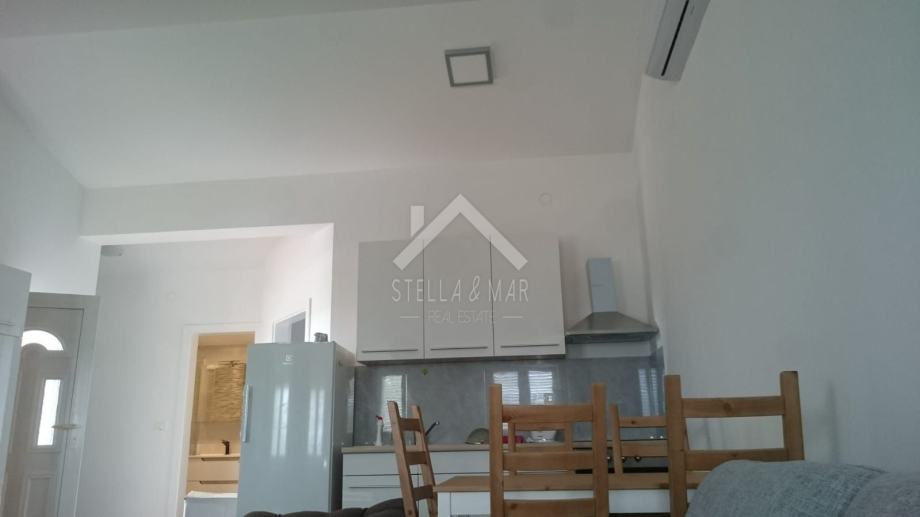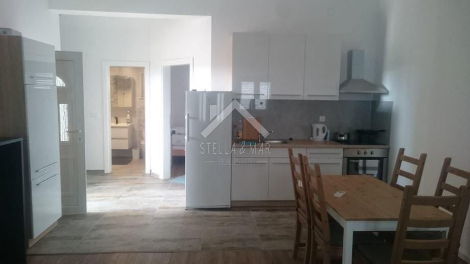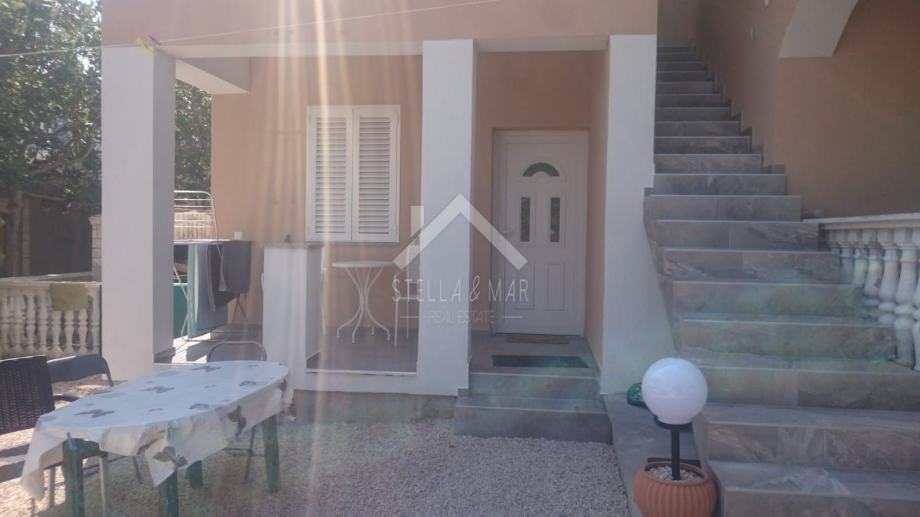 U prizemlju se nalazi jedan jednosoban apartman te jedan dvosoban. Na katu veliki dvosoban apartman sa velikom terasom iz koje se pruža pogled na more. U dvorištu moguće parkirati više automobila. Voda je iz cisterne, septička. Gradski vodovod i kanalizacija u tijeku spajanja na otoku Viru.