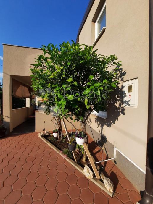 Na prizemlju se nalazi stan s dvije prostrane spavaće sobe, kuhinjom, dnevnim boravkom, kupaonicom i terasom. Ovaj stan je savršen za obitelj koja traži ugodan prostor za život i relaksaciju. Također ima pristup dvorištu, koje je prostrano i ima roštilj za uživanje u vanjskim aktivnostima. U dvorištu se nalaze i najmanje tri parkirna mjesta, osiguravajući dovoljno prostora za automobile.