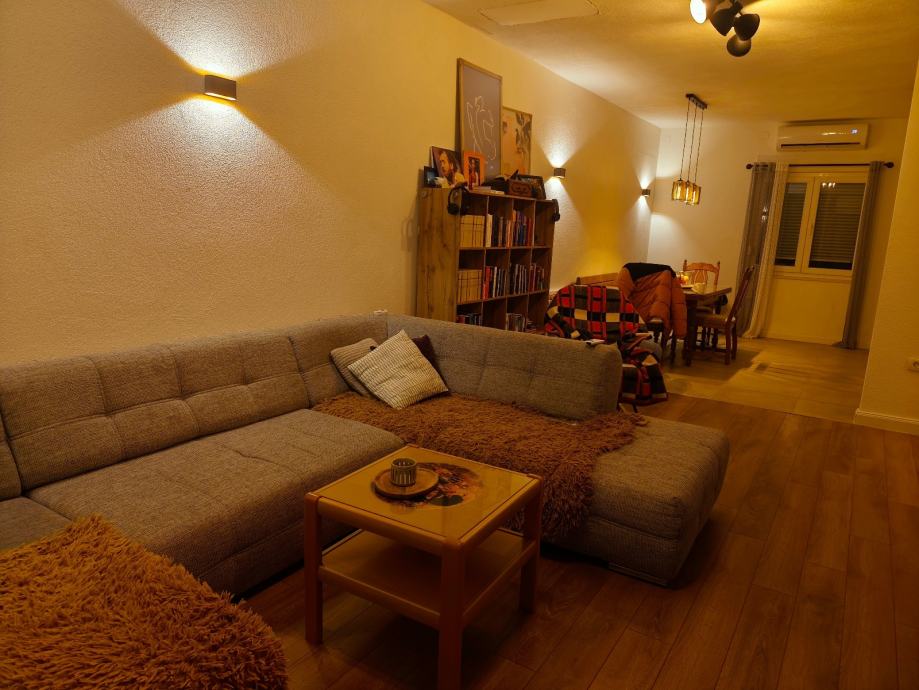 Stan je u stanju novo adaptirano (renoviran prije godinu dana) sa izvedenim novim instalacijama (struja i voda), novom stolarijom i kvalitetnim podovima i pločicama.