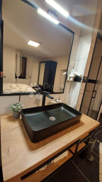 Prizemlje se sastoji od hodnika,sobe,dvije kupaonice sa WC-om,velike konobe preuređene u kuhinju sa blagovaonom i dnevnim boravkom,predsoblje,fitnes sa mini-barom te zasebnim WC-om.