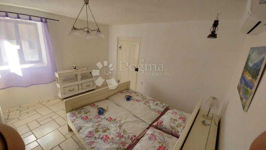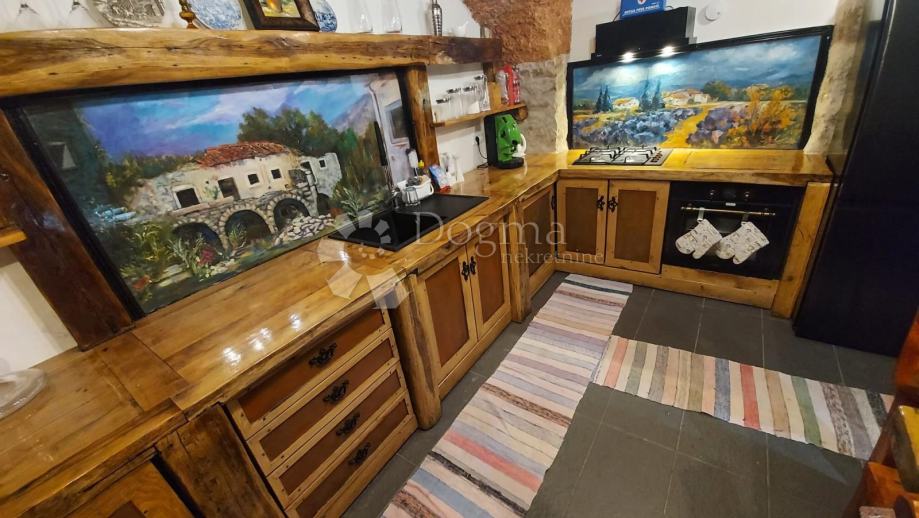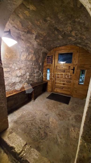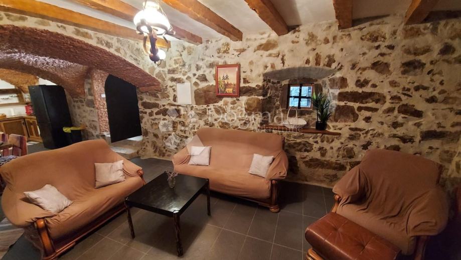 Prolazeći kroz masivna starinska vrata,ulazi se u veliko popločeno dvorište sa bazenom,kaminom te dvije natkrivene terase.