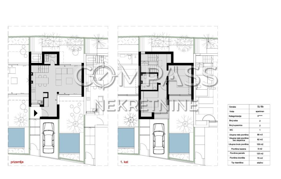 SJ 8b – Neto površina: 88 m² + bazen 9 m² + dvorište 70 m²