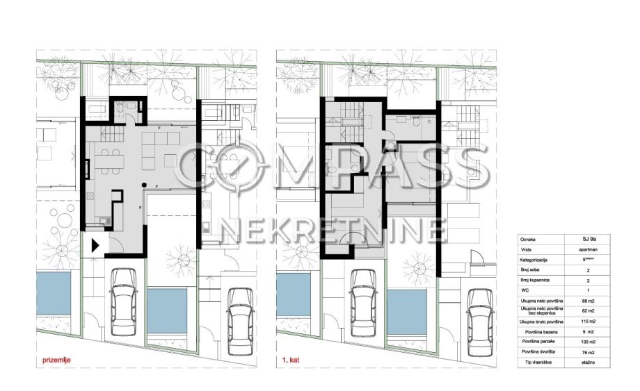 SJ 9a – Neto površina: 88 m² + bazen 9 m² + dvorište 76 m²