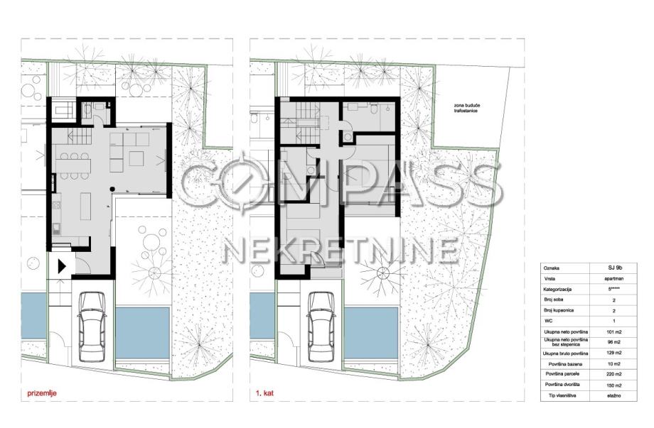 SJ 9b – Neto površina: 101 m² + bazen 10 m² + dvorište 150 m²