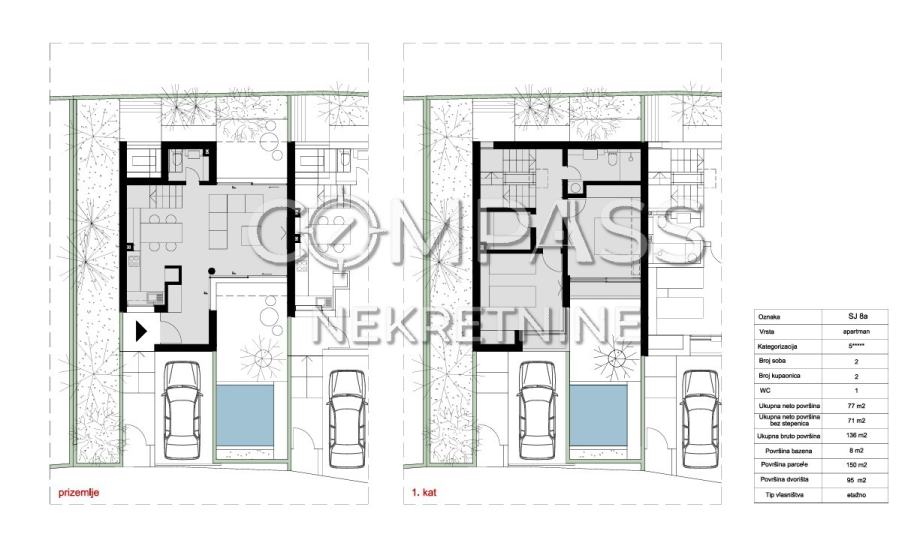 SJ 8a – Neto površina: 77 m² + bazen 8 m² + dvorište 95 m²