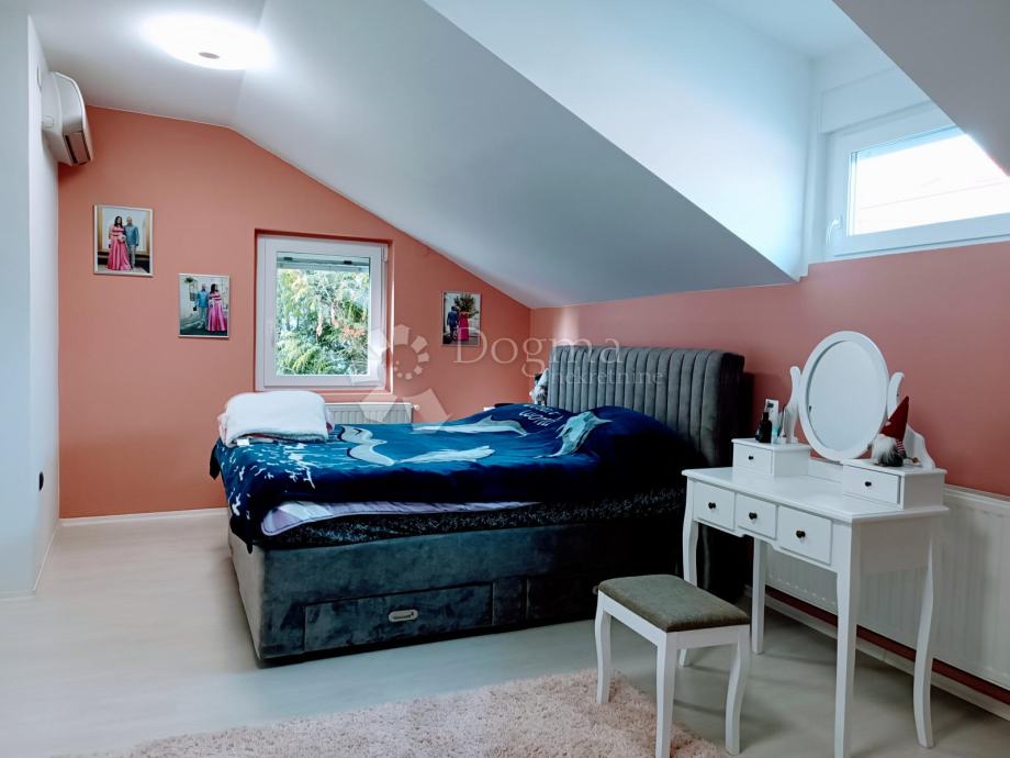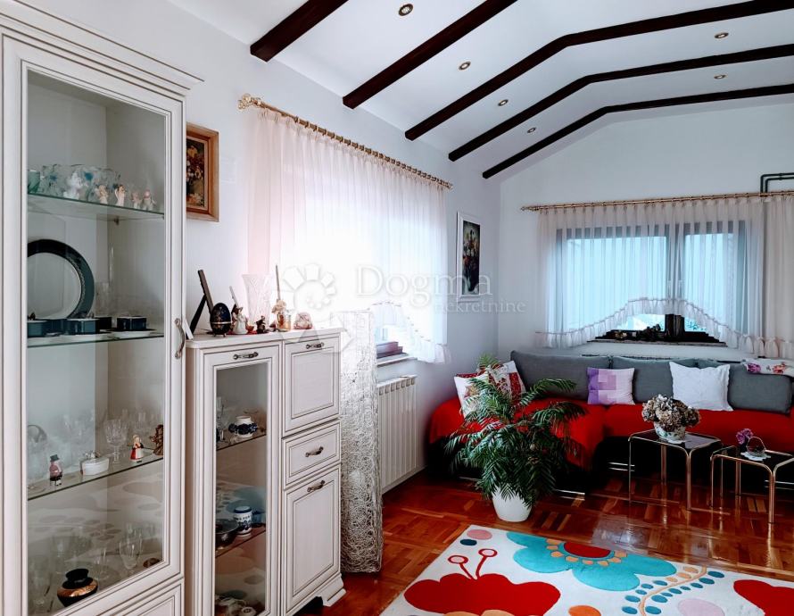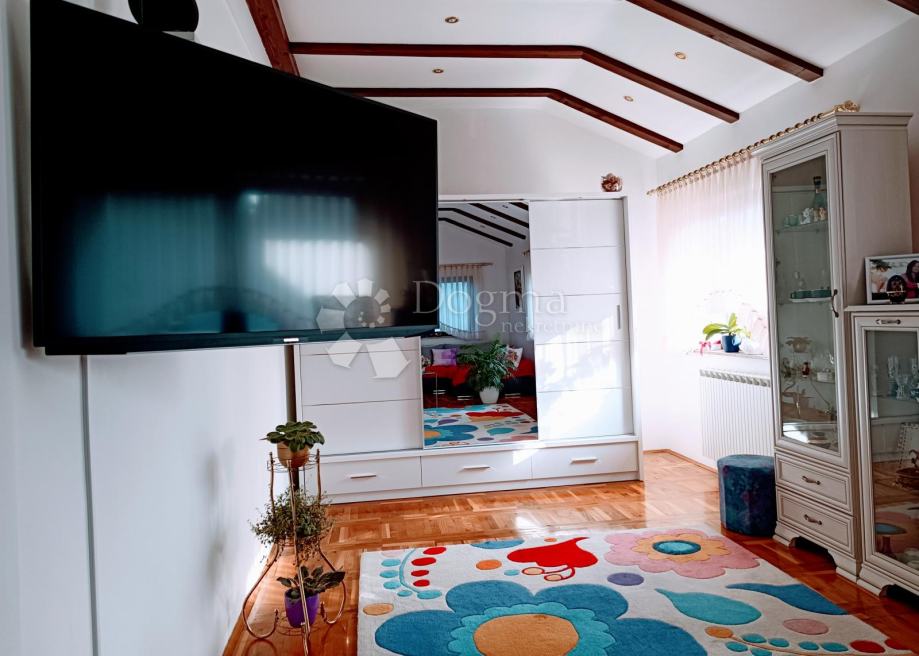 Kuća se sastoji od suterena,prizemlja,prvog kata i tavanskog dijela iznad garaže uz kuću,ima termofasadu te protupotresnu gradnju.