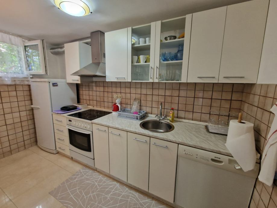 Prizemlje je u naravi komforan 2-soban stan od 82 m2 koji se iznajmljuje turistima tijekom ljetne sezone.
