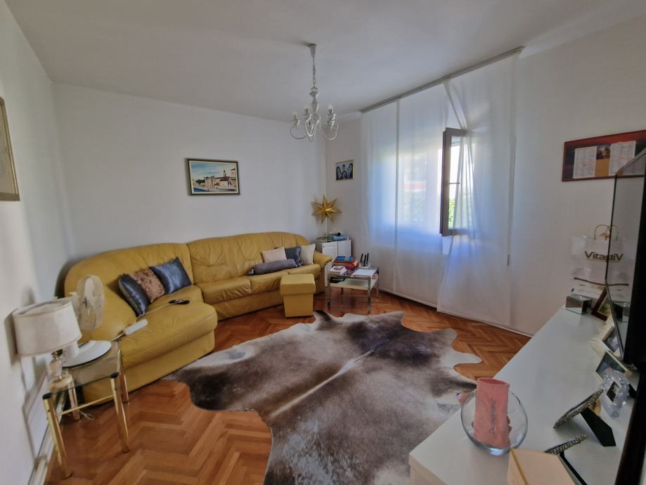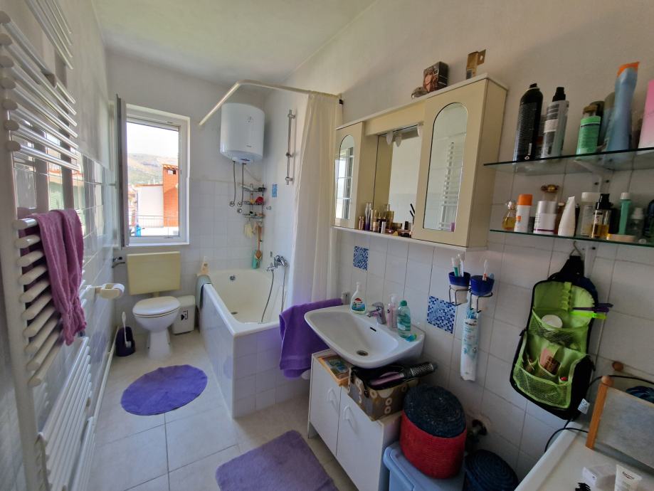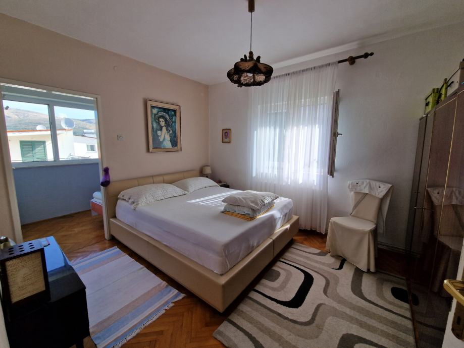 Kat je u naravi prostran 3-soban stan od 122 m2 s balkonom s kojeg se pruža očaravajući pogled na Trogirsku rivu.