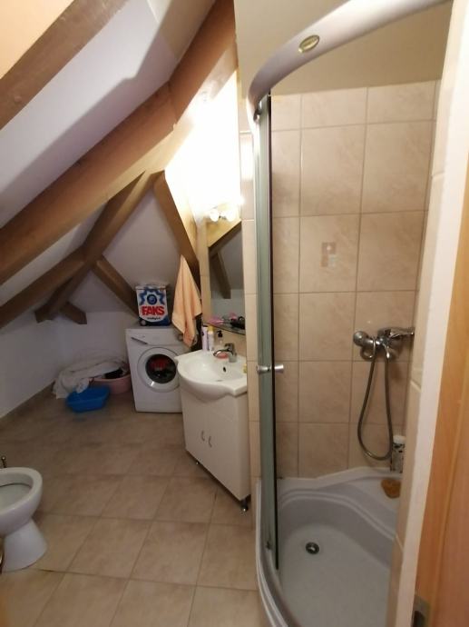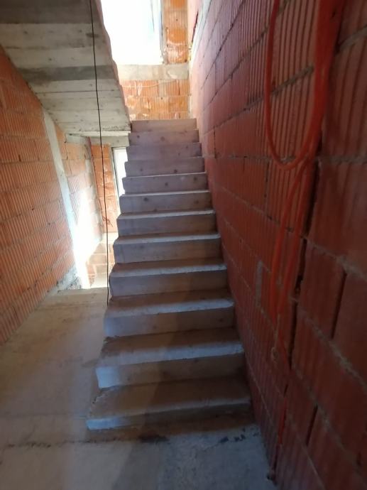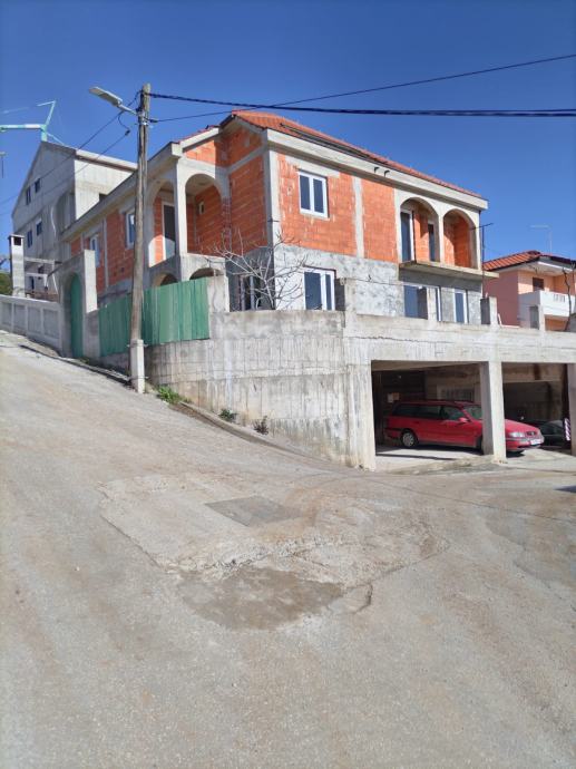 Kuća je građena za tri apartmana u prizemlju po 40-tak m2 ili dva stana po 65 m2, tri apartmana na prvom katu po 40-tak m2 ili dva stana po 65 m2, jedan suterenski stan/apartman od 50-tak m2, jedan potkrovni stan/apartman od 70-ak m2, koji je uređen za stanovanje, ostatak kuće je u roh-bau stanju, objekt ima sustav garaža u sklopu kojeg se može parkirati od 9 do 13 osobnih automobila.