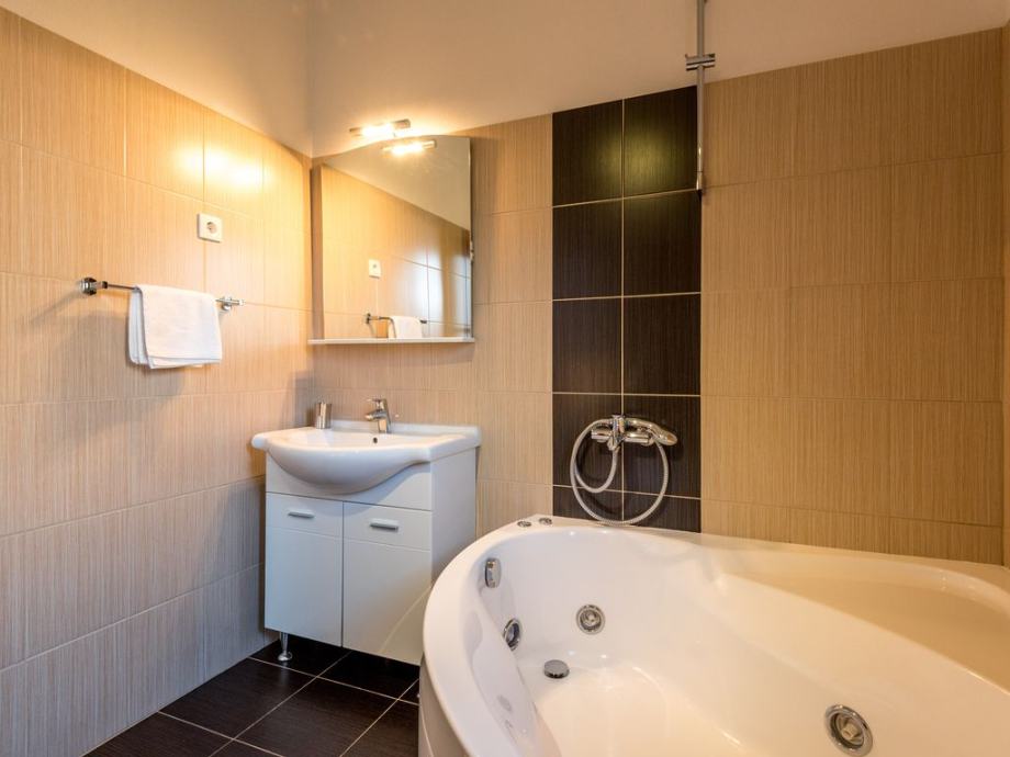 3-room apartment 130 m2 on 2nd floor, south facing position, comfortable and cosy furnishings: living/dining room 60 m2 with 1 sofabed and satellite TV (flat screen), air conditioning. Exit to the balcony. 1 room with 1 double bed (2 x 80 cm, length 200 cm), bath/WC and air conditioning. Exit to the balcony. 1 room with 1 double bed (2 x 80 cm, length 200 cm), bath/WC, whirlpool, with corner bath and air conditioning. Open kitchen (oven, dishwasher, 4 ceramic glass hob hotplates, freezer). Sep. WC. Balcony 15 m2, balcony 5 m2. Balcony furniture. Marvellous view of the sea.