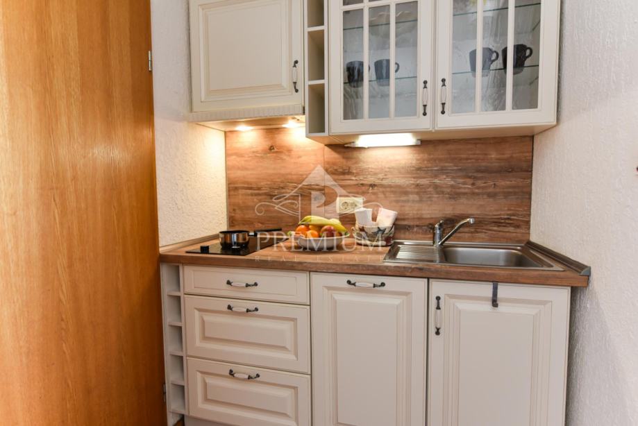 Ovaj apratman tipa STUDIO nalazi se u prizemlju kuće (s morske strane 1. kat). Opremljen sa svom potrebnom opremom i namještajem te izlazom na balkon. Obje stambene jedinice imaju odvojene ulaze ali su međusobno povezane i unutarnjim stubama. Objekt je trenutno kategoriziran sa 3 zvjezdice.