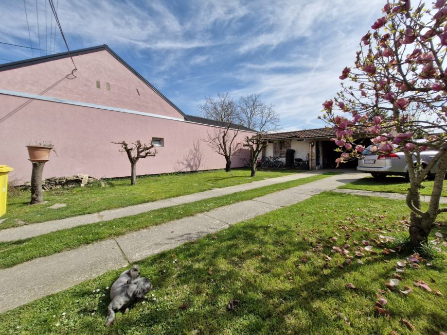 Ispod kuće je i podrum od 20 m2, a u dvorištu su pomoćne prostorije s garažom od 50 m2.