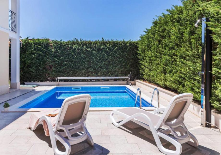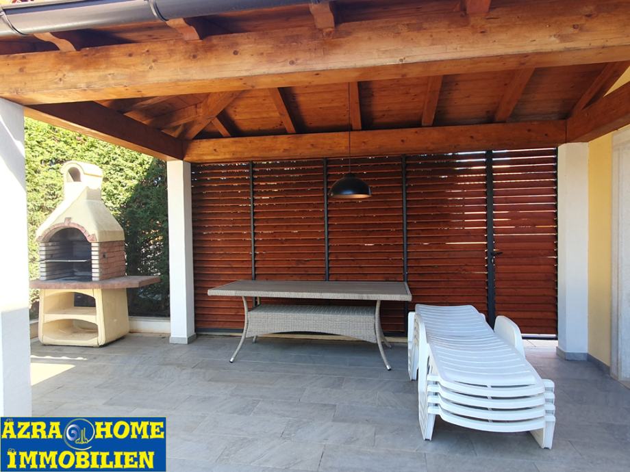 U dvorištu je bazen i nadstršenica .
