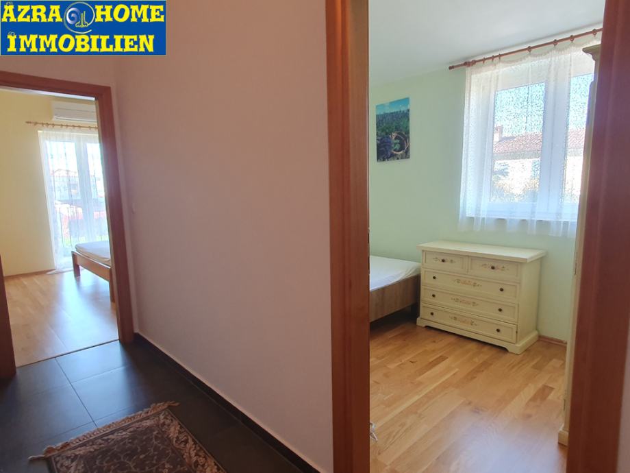 VABRIGA, ca.1km od mora i ca.7km od Poreča, na mirnoj lokaciji nalazi se ova kuća iz 2009. g., na kraju niza. Kuća je na dvije etaže i ima ukupnu površinu 87,71 m2 ( Prizemlje: kuhinja, trpezarija, kupatilo i dnevni boravak. Iz kuhinje i dnevnog boravka je moguće izaći u dvorište. Unutarnjim stepenicama smještenim između kuhinje i dnevnog boravka ide se na prvi kat gdje se nalaze tri spavaće sobe , jedno kupatilo. Jedna spavaća soba ima terasu.