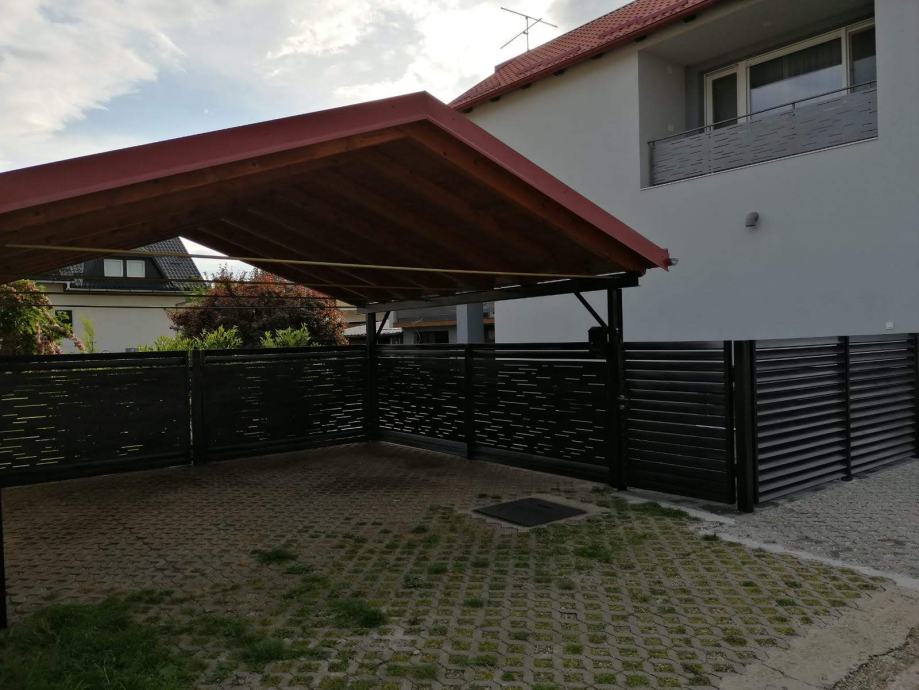- postoji nadstrešnica s 2 parkirna mjesta i jedna garaža koja se trenutno koristi kao prostorija za stvari/bicikle
