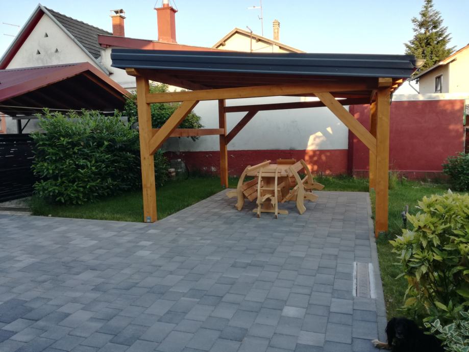- na dvorištu je napravljena drvena nadstrešnica 4x4m