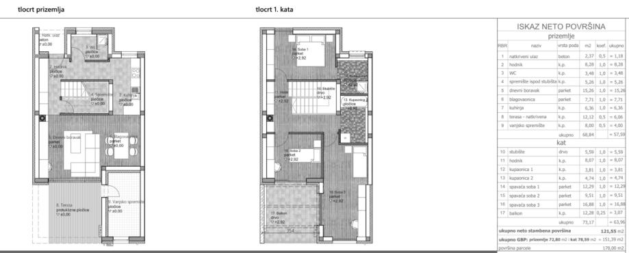 Raspored prostorija – vidi priloženi tlocrt i specifikaciju površina