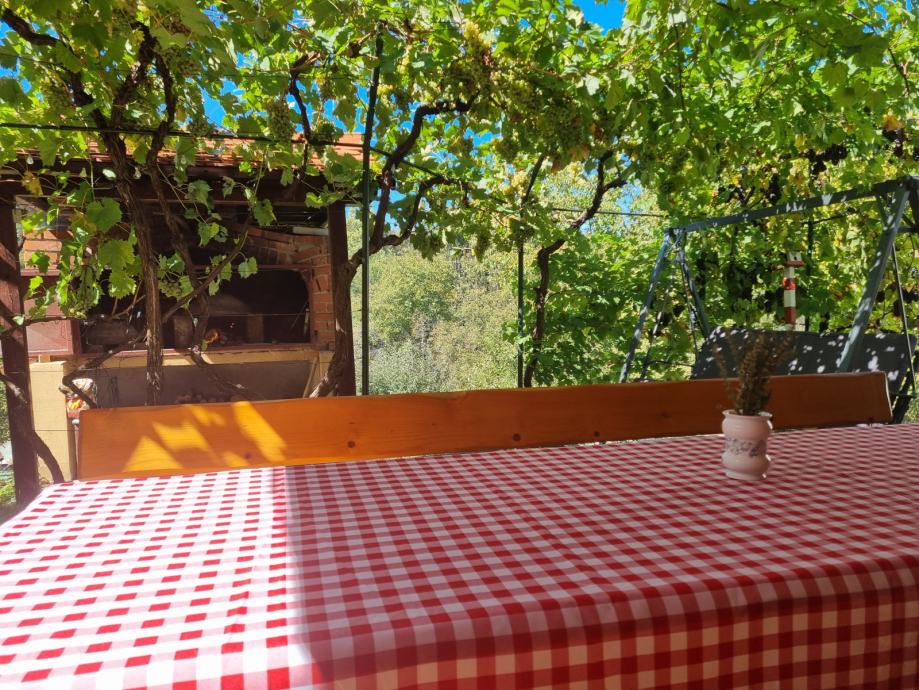 Dojnja etaza-kuhinja, dnevni boravak, wc, izlaz na terasu s kaminom.