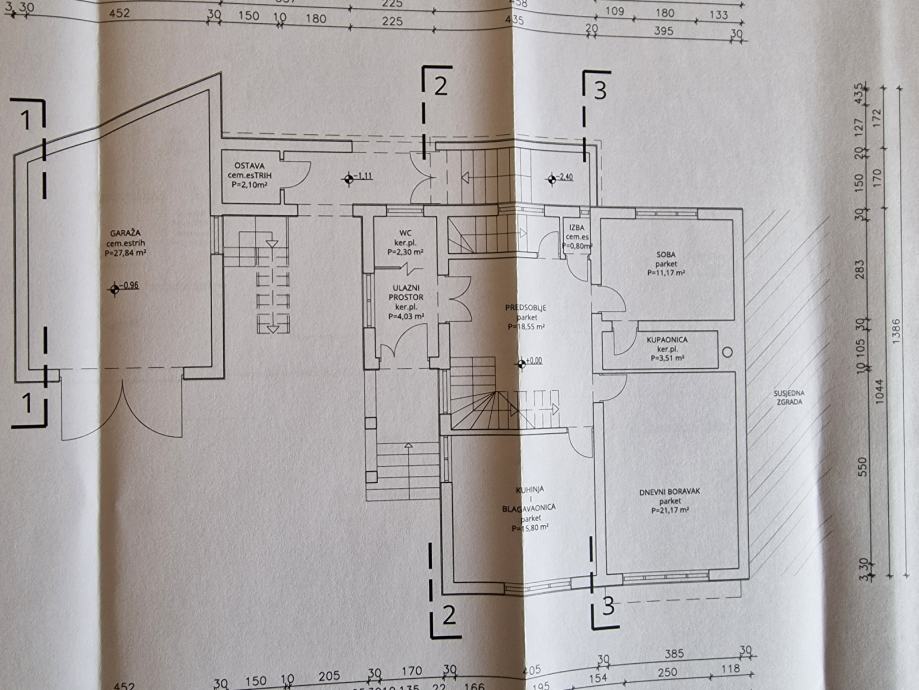 Garaža ima 28 m2, a u njezinom potkrovlju je spremište.