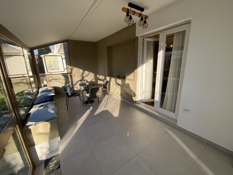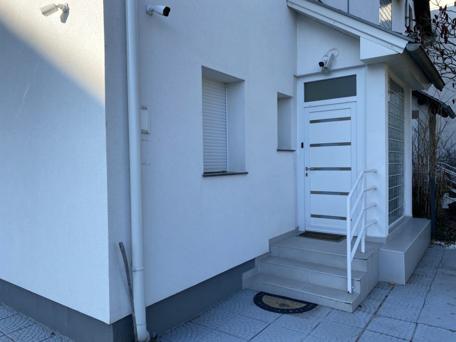 Vanjski dijelovi uključuju balkon s otvorenim pogledom i dovoljno parkirnog prostora za tri vozila. Kuća je građena kombinacijom betona i opeke, uz odličnu izolaciju. Nudi se potpuno nova prilika za stambenu namjenu u urbanom naselju.