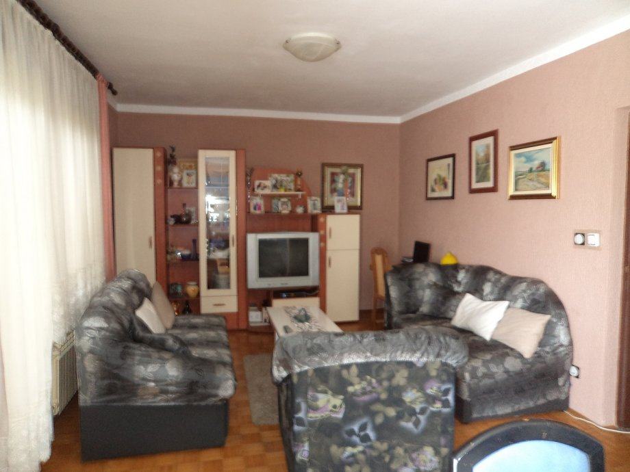 Samostojeća obiteljska kuća visoka prizemnica površine 220 m2 i okućnice 520 m2.Sastoji se od: podruma ispod cjele kuće (garaža i dvije prostorije), prizemlja(ulaznog hodnika,kuhinje sa blagovaonicom i d.boravkom,dvije spavaće sobe i kupaonice) i visoko potkrovlje (isti raspored - kuhinja i d.boravak nisu uređeni). Kuća se prodaje kompletno namještena.