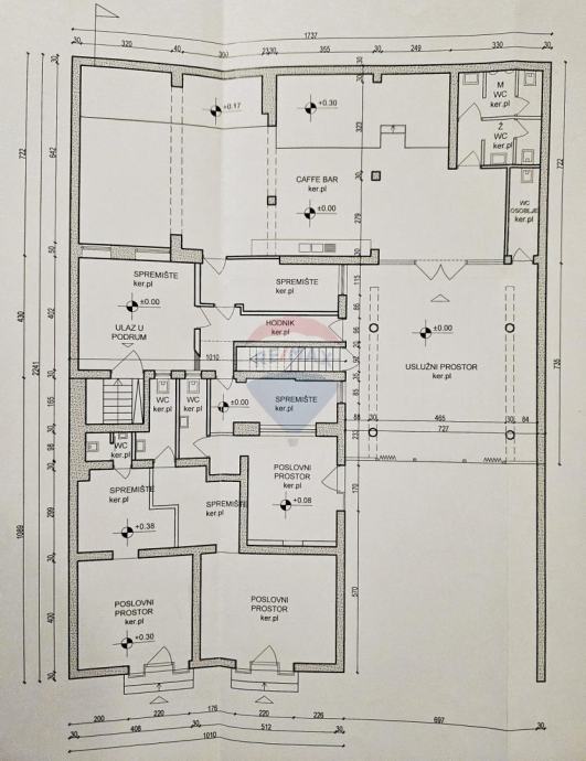 Sastoji se od tri ulična poslovna prostora veličine 25 m2, 45 m2, 30 m2 te ugostiteljskog objekta ukupne površine od 230 m2.