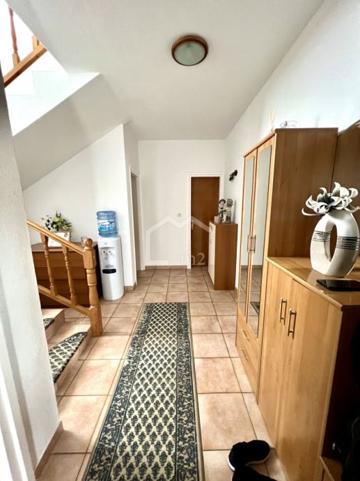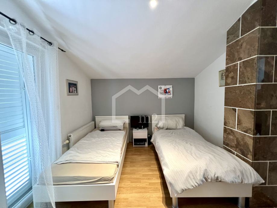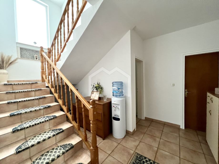 Posredujemo u prodaji kuće katnice u mirnom okruženju u Kaštel Sarom. Smještena je na parceli površine 742 m2 i stambene površine od 180 m2. Sastoji se od prizemlja i kata. Prizemlje se sastoji od ulaznog dijela, kuhinje i dnevnog boravka, spavaće sobe, kupaonice, te natkrivene terase. Na prvom katu se nalaze četiri spavaće sobe, kupaona i velika ostava. Sa svake etaže možete uživati u pogledu na more. Do kuće vodi cesta koja je ujedno i slijepa ulica, a u sklopu parcele osigurana su i parking mjesta za 6 auta. Kuća posjeduje i garažu koja je sada prenamjenjena u kuhinju i dnevni boravak a ima i centralno grijanje, klimu, roštilj i veliki vrt. Svi sadržaji potrebni za život nalaze se na svega par kilometara udaljenosti. Vlasništvo uredno.
