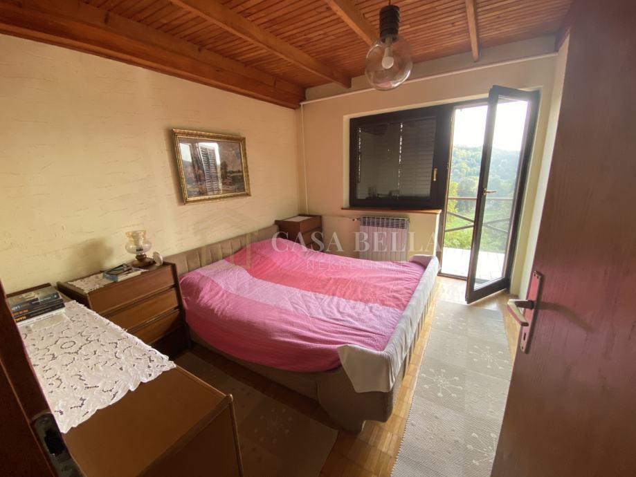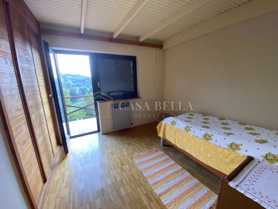 Na gornjem katu se nalazi kupaonica sa kadom, tri spavaće sobe od kojih dvije imaju izlaz na balkon.