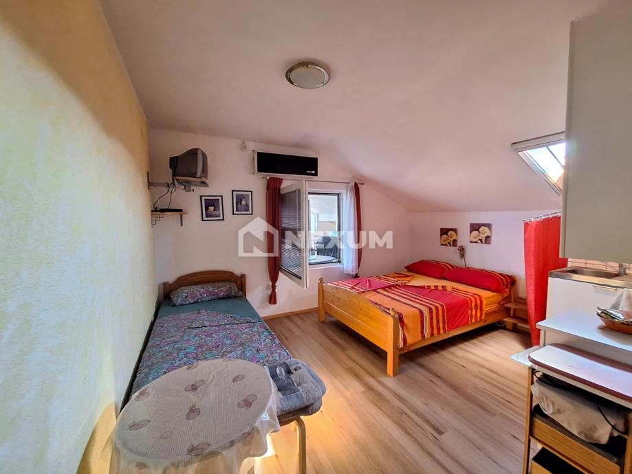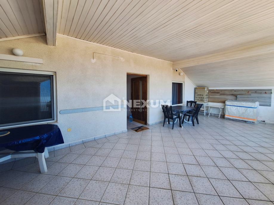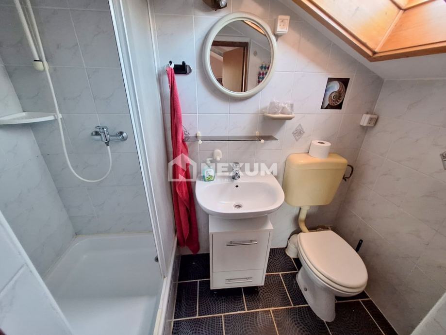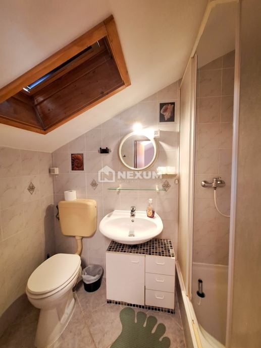 U prizemlju: trosoban stan površine 104 m² koji se sastoji od tri prostrane sobe, kupaonice, kuhinje, blagovaonice i dnevnog boravka te ostave. Posebnost ovog stana je velika loggia od 45 m² s prekrasnim pogledom na more. Stan zahtijeva adaptaciju, što pruža mogućnost uređenja po vlastitim željama.