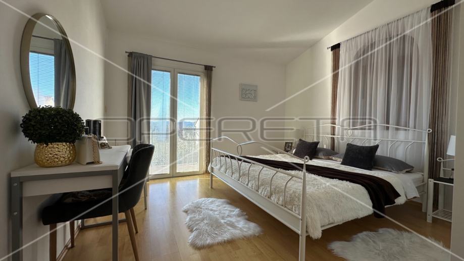 U prizemlju je veliki stan neto površine 162m2, s 3 spavaće sobe, dnevnim boravkom, kuhinjom, kupaonicom s toaletom, te dva veća spremišta.