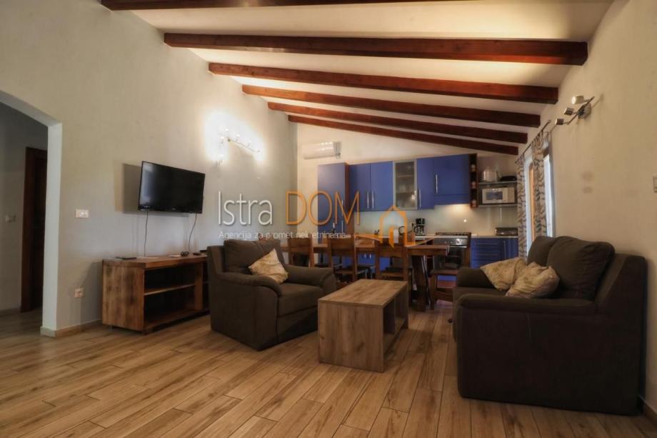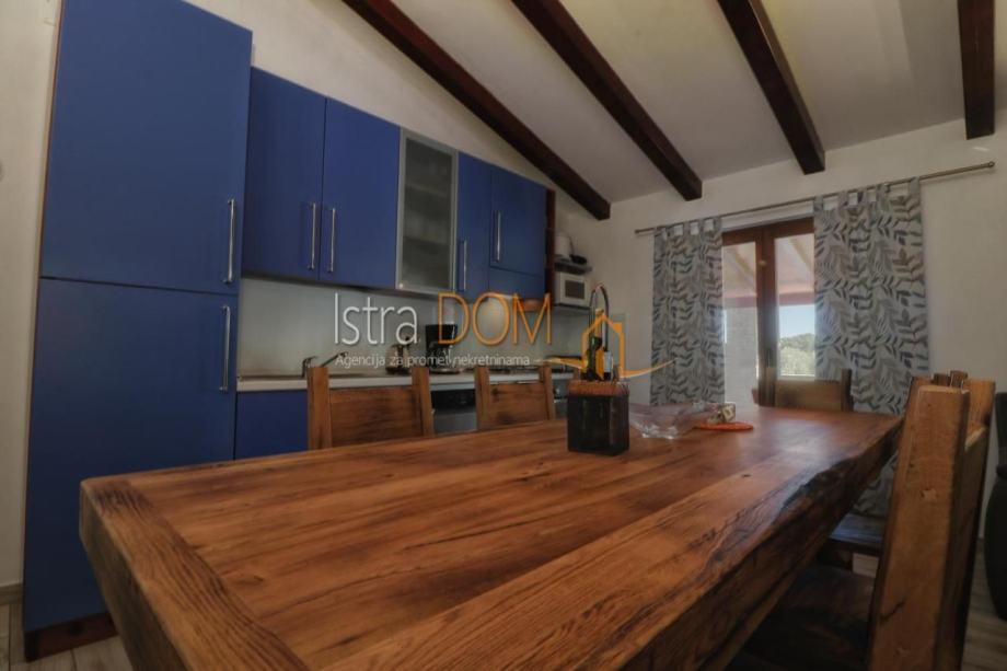 Istra, okolica Marčane, prodaje se samostojeća legalizirana prizemnica na parceli od 7000 m2 s pogledom na more. Kuća se sastoji od tri spavaće sobe, kupaonice, WC-a, otvorenog prostora u kojem se nalazi kuhinja, blagovaonica i dnevni boravak s izlazom na veliku natkrivenu terasu.