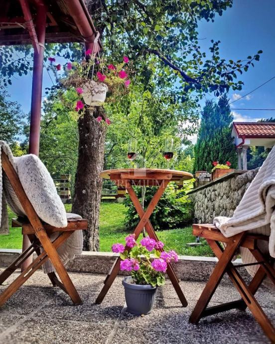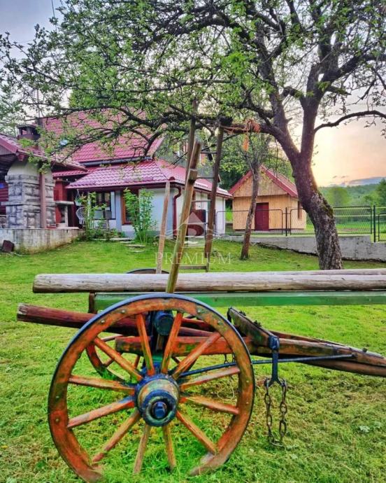 Sa zadovoljstvom Vam predstavljamo čarobnu kuću za odmor koja se smjestila u predivnoj, nedirnutoj oazi Gorskog kotara u blizini Ravne Gore. Kuća ima ukupnu stambenu površinu 218 m2 koju čine prizemlje, kat i potkrovlje. U prizemlju kuće se nalazi prostrani dnevni boravak s prekrasnim kaminom te kuhinja s blagovaonicom gdje ima dovoljno prostora za opuštanje i druženje s obitelji i prijateljima. Na katu se nalaze četiri spavaće sobe i dvije velike kupaone koje pružaju potpunu privatnost koja je potrebna za udoban boravak. Kuća osim boravka nudi i mnoge dodatne pogodnosti u prostranom dvorištu, kao što su manja kućica sa jacuzzijem, jog za boćanje, roštilj, ljetna kuhinja. U dvoristu, koje je popločeno, nalazi se i manja fontana. Uz glavnu kuću je već započela gradnja obiteljske kuće koja ima gotov planski projekt koji se može prilagoditi potrebama novog vlasnika.