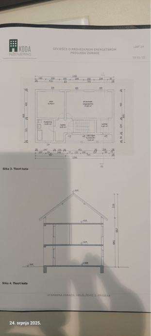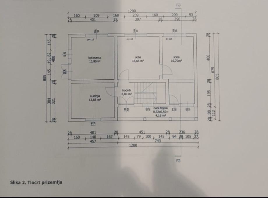Na prodaju je kuća sa velikom okućnicom cca 4700m2. Uz kuću je gospodarska zgrada. Raspored prostorija u tlocrtima.