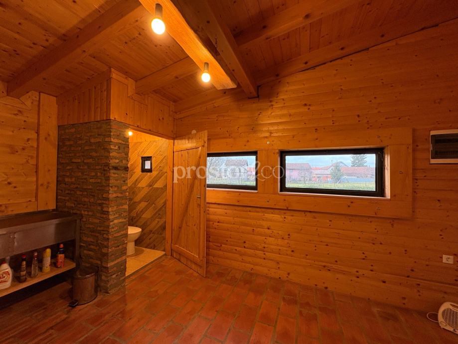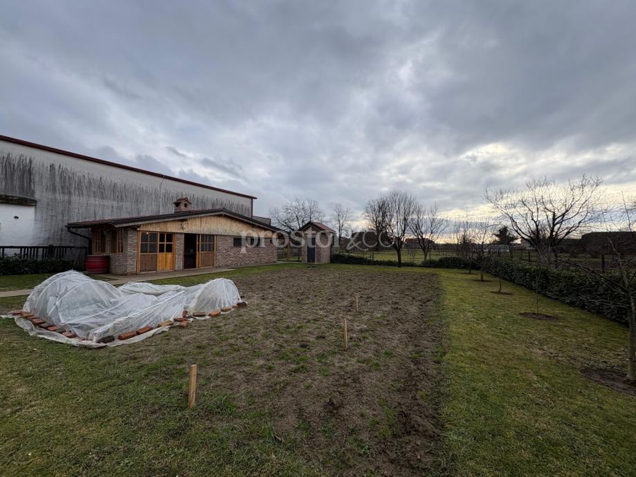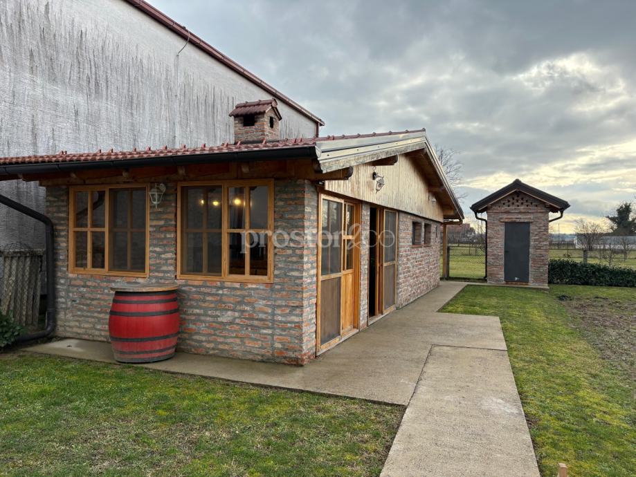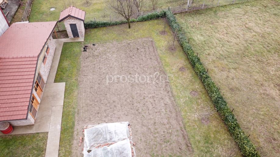 Okućnica je velika i uređena te nudi oko 950 m² dvorišta. U dvorištu se nalazi kvalitetno izgrađena i prostrana konoba s kaminom i potpuno opremljenom kuhinjom, idealna za druženja i boravak na otvorenom. Prostor dvorišta pruža dovoljno mjesta za izgradnju bazena i dodatnih sadržaja. Kuća ima bunar i hidrofor pa može biti potpuno ili djelomično autonomna od gradskog vodovoda, što je posebno praktično za održavanje vrta ili bazena uz vrlo niske troškove.