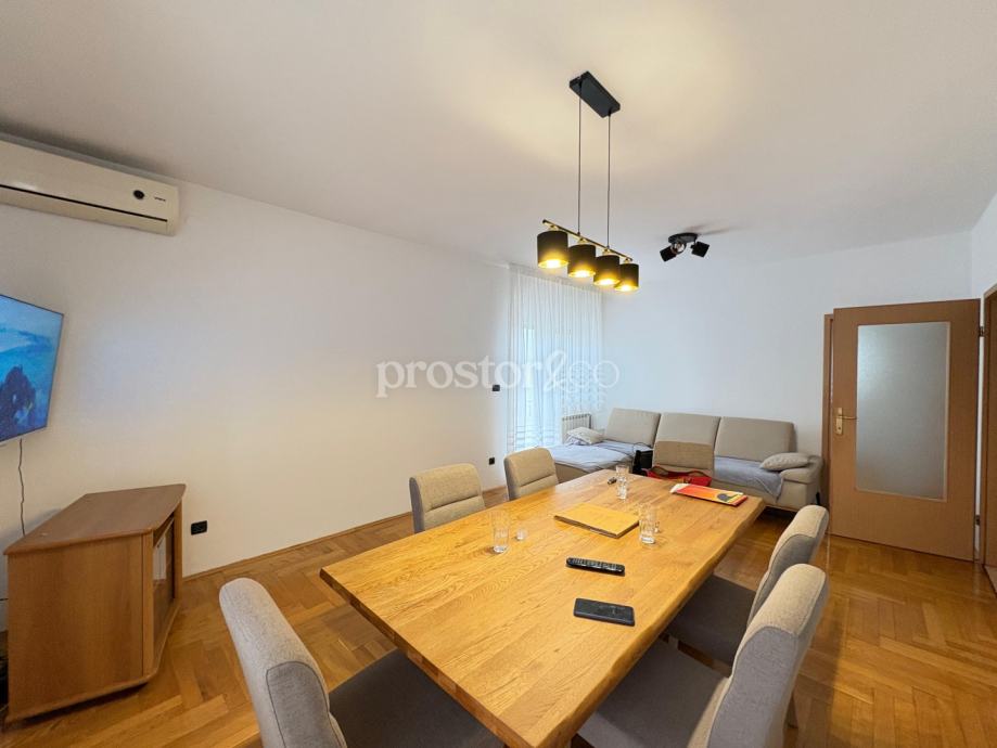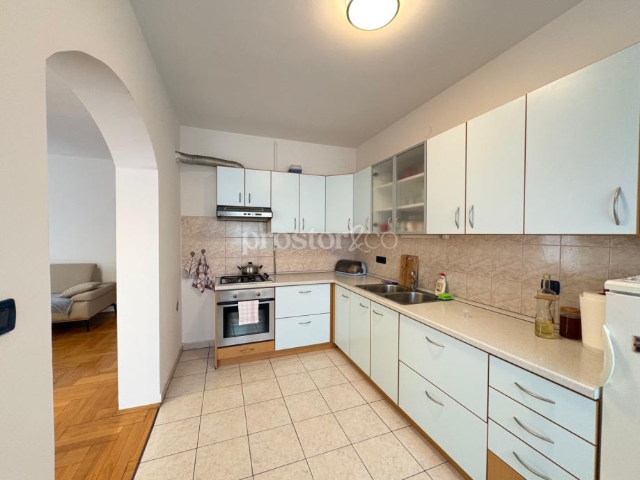 U prizemlju se nalazi prostrani stan površine oko 100 m². Dvije velike spavaće sobe orijentirane su prema dvorištu, a tu su i kuhinja sa smočnicom, velika blagovaonica, kupaonica, dodatni WC te velika terasa s pogledom na vrt i dvorište. Visina stropa je 260cm.