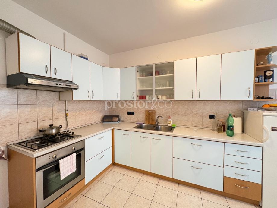 Na prvom katu nalazi se stan površine oko 105 m² u roh-bau stanju s vrlo praktičnim i otvorenim rasporedom. Predviđene su dvije spavaće sobe, kupaonica te kuhinja s dnevnim boravkom i blagovaonicom otvorenog koncepta. Stan ima i veliku terasu, a raspored omogućuje dovršetak i uređenje prema vlastitim željama ili kao zasebnu stambenu jedinicu. Visina stropa je 270cm.