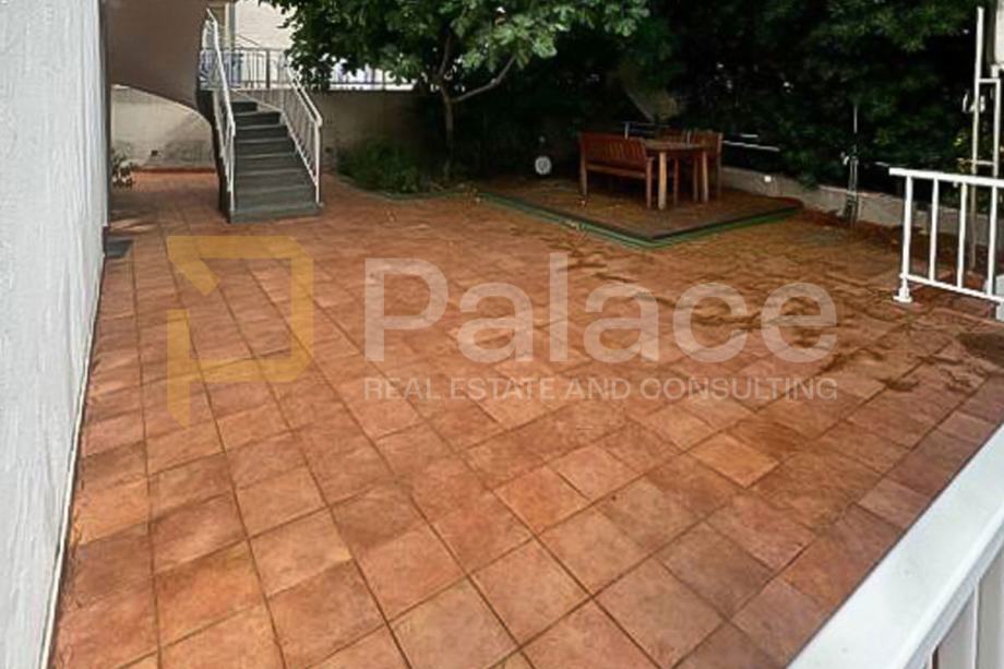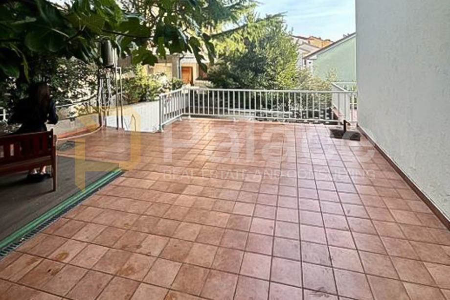 Okućnica površine 160 m² uključuje dvije vrtne površine, veliku terasu s vanjskim tušem i prostorom za uživanje, kao i zidani roštilj.