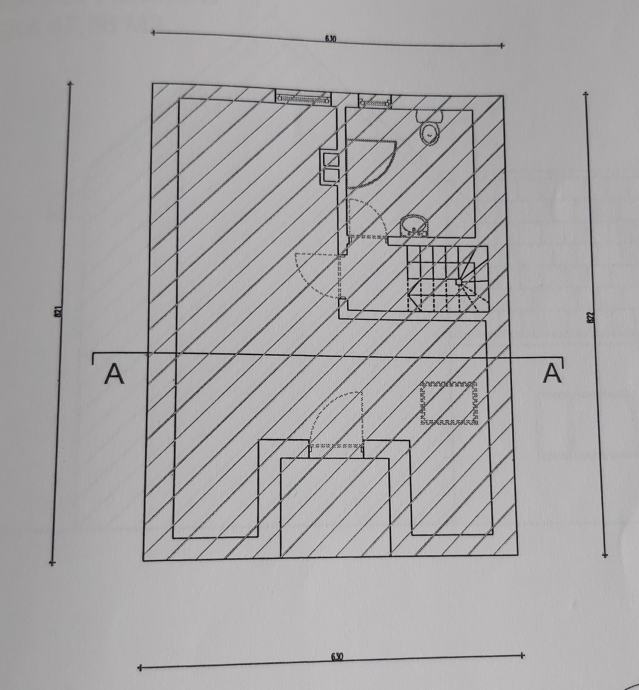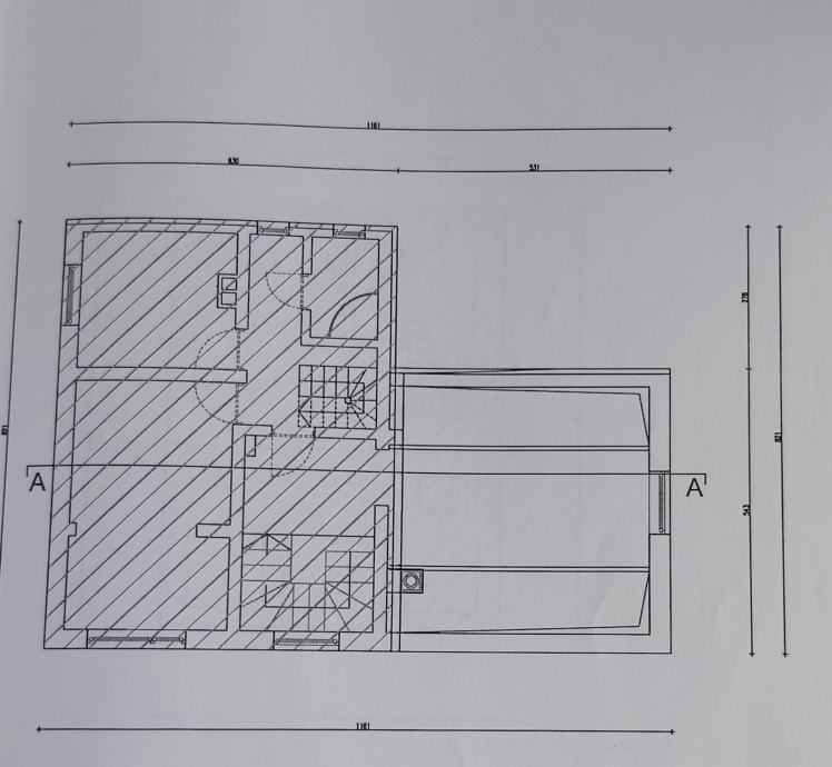 Sastoji se od prizemlja u kojem je velika kuhinja s blagovainicom, dnevni boravak, kupaonica i stubište za kat,II. DIO spremište i ostava.