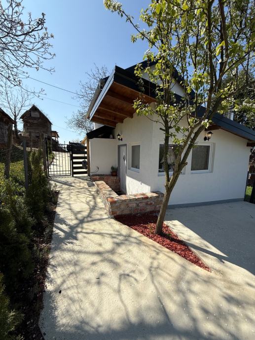 Prodajem preljepu novu vikendicu samo 20 minuta od Zagreba u mjestu Klostar Ivanic, kod Ivanic Grada. Vikendica je novo napravljena i zavrsena ove godine, potpuno je opremljena novim aparatima, podnim grijanjem kupaona, klima uređajem i peci na drva sa velikim staklom radi ugođaja. Parcela od 670 m2 di se ista nalazi je potpuno ograđena ogradom sto je odlicno ako imate kucne ljubimce, a i od neželjenih gostiju, dok je na istoj 20tak vocki koje ljepo radaju plodove od jabuka, krusaka, visnja, tresnja te šljiva. U dvoristu objekta je dopeljana jaka struja za hidromasazni bazen ili saunu koju možete ugradit ovisno o vašim potrebama. Kuca kao takva pogodna je za život i za vikend kucu kako je kome potreba. Objekt ima 2 wca, jedan s kadom i perilicom rublja, drugi samo wc i umivaonik namjenjeno za goste, 2 spavace sobe te dnevni boravak povezan s prostranom kuhinjom i blagavaonom.