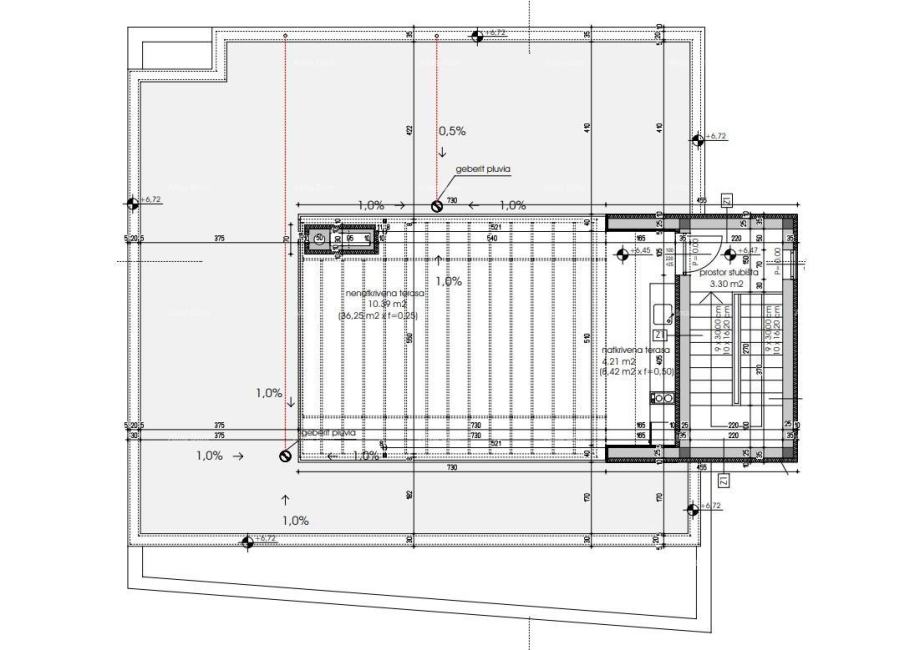 Na drugom katu nalazi se prostor stubišta, natkrivena i nenatkrivena terasa.