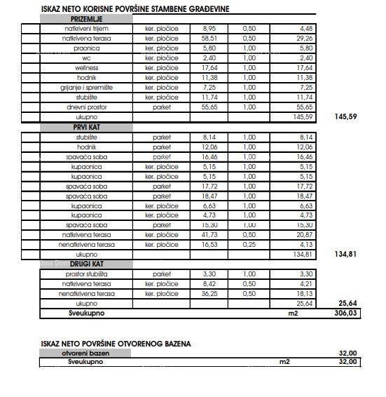 Na okučnici vile se nalazi otvoreni bazen veličine 8m*4m, predviđena dubina vode je 135 cm.