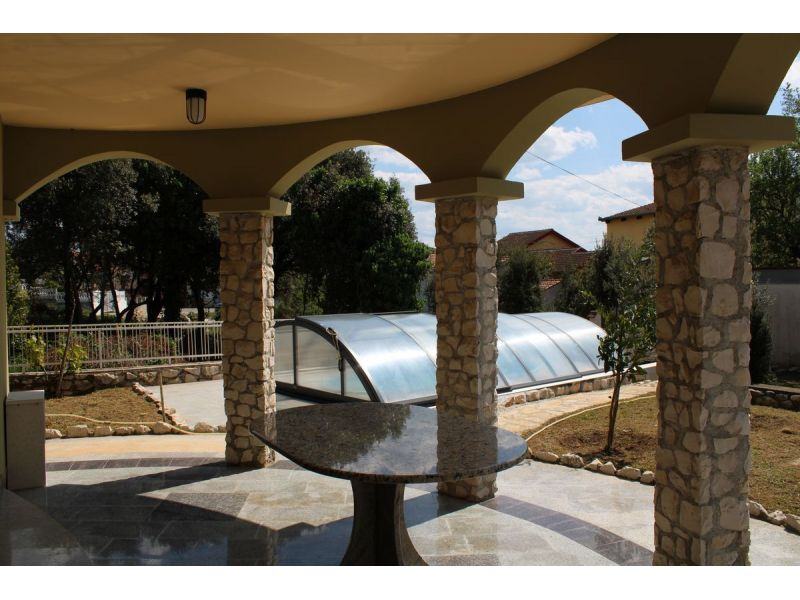 Prodaje se luksuzno uređena kuća- vila u mirnoj i slijepoj ulici u Svetom Filip Jakovu iznad magistrale udaljena 300 m. Do vile vodi asfaltirani put a cijela parcela je ograđena suhozidom i ogradom. Na parceli se nalazi natkriveni roštilj sa stolom i stolicama te natkriveni bazen. Vila se sastoji od prizemlja u kojem se nalazi hodnik, ostava, tuš sa WC-om, kuhinja, blagovaona, dnevni boravak iz kojeg se izlazi na dvije terase, jedna je bočno i na njoj se nalazi roštilj a druga je velika terasa i gleda na dvorište. U hodniku su stepenice od granita koje vode na kat na kojem je velika kupaona i tri sobe i svaka ima izlaz na terasu te klima uređaj. U dnevnom boravku se nalazi kamin. Vlasništvo je čisto i ima svu potrebnu dokumentciju.