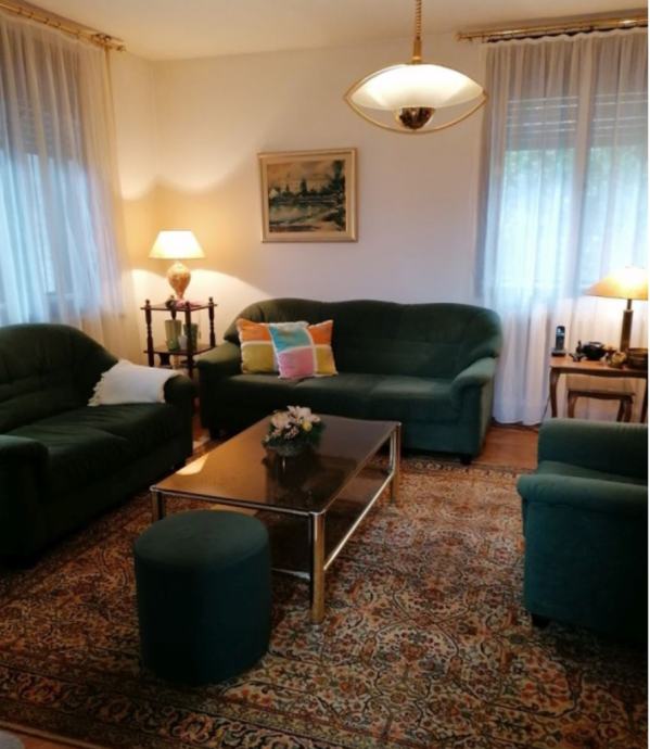 Samostojeća obiteljska kuća u Vinkovcima u Vrtnom naselju. Kuća ima 210 m2 i smještena je na prostranoj zemljišnoj parceli od 756 m2, koja osigurava veliku privatnost i vlastiti mir, budući da se kuća nalazi u slijepoj ulici.