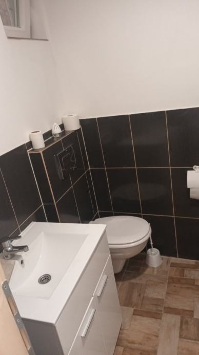 Kuća je podjeljena u 6 soba koje su pogodne za iznajmljivanje. Svaka soba je potpuno namještena i ima wc,tuš,kuhinju, tv, klimu. Kuća također ima i ograđeno dvorište i podrum. Može prodaja na rate.