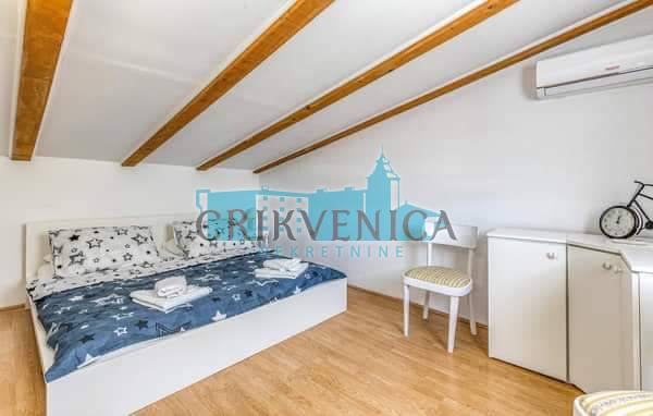 U prodaji je kuća u Novom Vinodolskom udaljena od mora nekih 700 metara. Kuća je ukupne površine 150m2 te ima dvije sobe, dnevni boravak, kuhinju, kupatilo, mini teretanu sa jakuzijem i veliku terasu od 30m2.