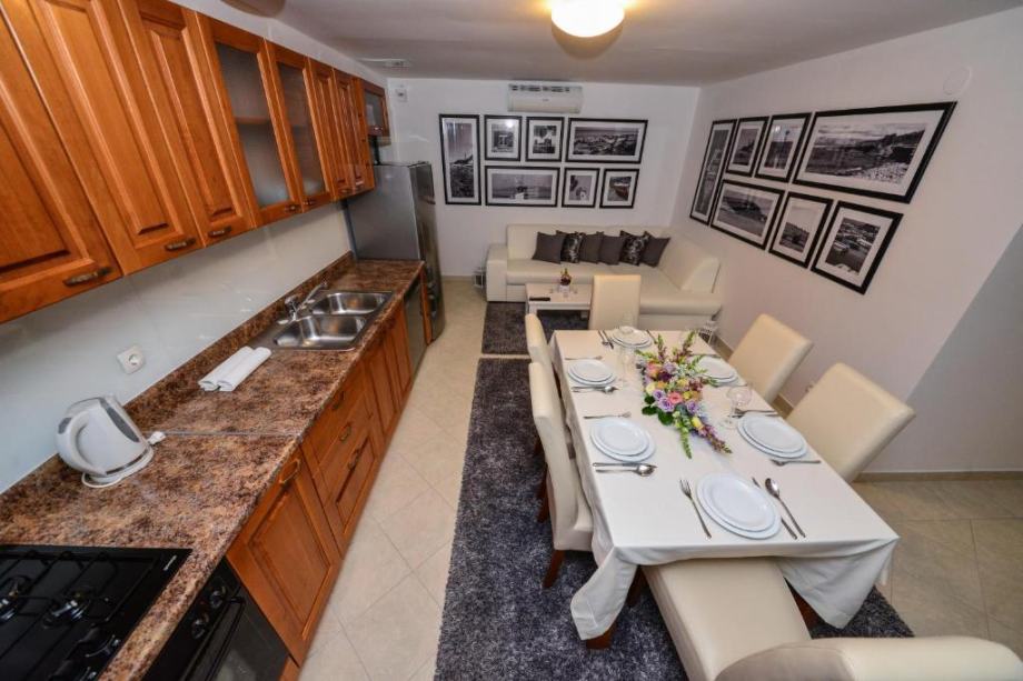 Kat: dva stana svaki sa dvije spavaće sobe, kuhinjom sa blagovaonicom,dnevnim boravkom i terasama, jedan od stanova ima dvije kupaonice.