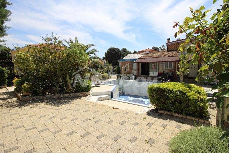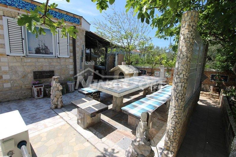 Bazen 35 m2 podrum ispod kuće, grijanje – klime + kamin, krov – crijep, fasada - termo, ograda, okućnica – prostrana , uređena sa zelenilom, sjenicom i kamenim klupama, voda, struja, telefon.