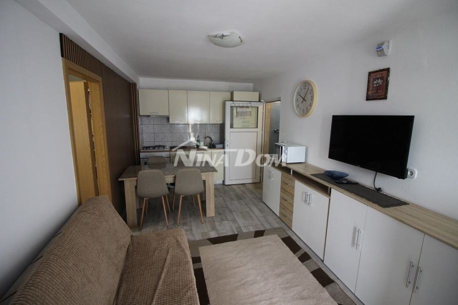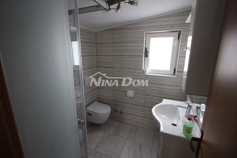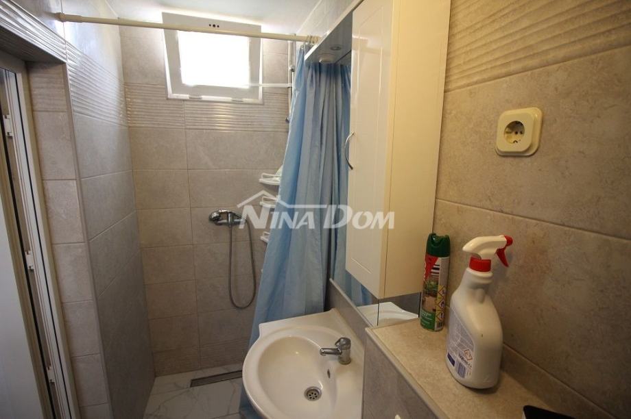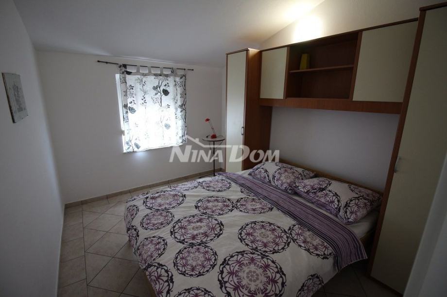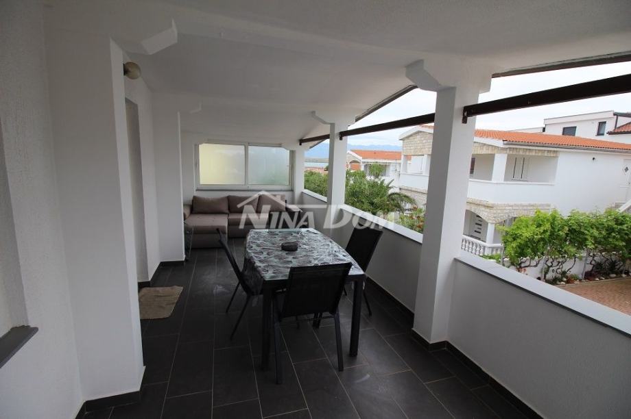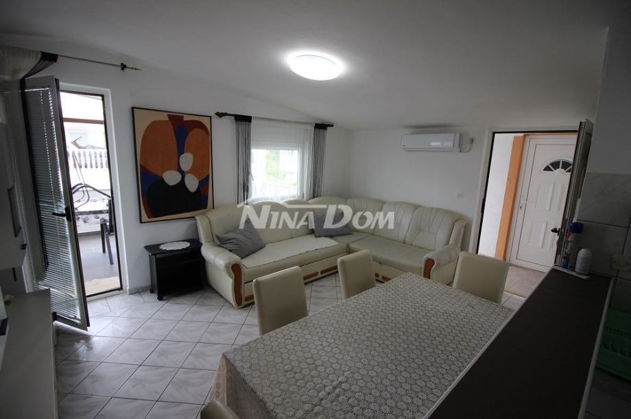 Samostojeća kuća na kat. Prizemlje: apartman koji ima dvije spavaće sobe, kuhinju s dnevnim boravkom, kupaonu i terasu s duplom garažom. Na katu apartman s dvije spavaće sobe, kuhinju s dnevnim boravkom, kupaonu i terasu i jedan apartman s jednom spavaćom sobom, kuhinja s dnevnim boravkom, kupaona i terasa. Nekretnina je lijepo uređena, kompletno opremljen i kao takva se prodaje. Okućnica uređena prostrana s dosta zelenila i sjenicom za ugodno druženje. Od mora je udaljena 300 metara.